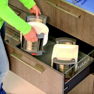 Leises Ladenschließen mit dem neuen Vollauszug - Blumotionsystem.